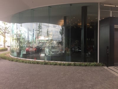 扉が開くと目の前に大きなカウンターがあり、展示車両が左側にずらっと並ぶ様子はそれほど驚く事もなく、いつも見慣れた様子ですが、これも本来ベンツAGに決められた床や柱も異なるとの事でした。