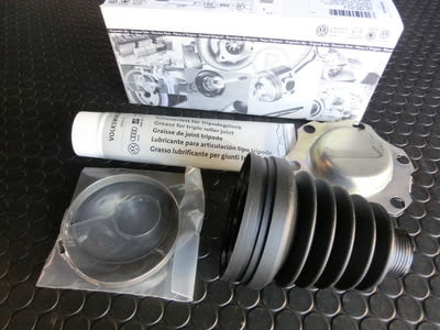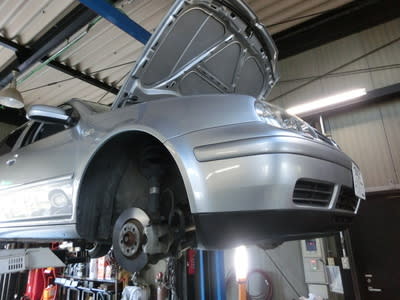 今回初めて車検のご利用を頂きましたGOLF4です。車検整備において左ドライブシャフトブーツから、グリスが漏れてきています。