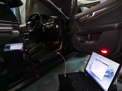しかしチューニング方法は全く同じで、診断テスターで使うOBD2メ[トから、オリジナルプログラムの吸出し、チューニングプログラムを書き込みます。後期型のC63は昨年末にリアのカーボンディフューザーをご注文いただいているユーザー様ですが、あまりにディフューザーが遅いため次の予定であった“Hyper-Chip”の施工を前唐オで入魂させて頂くことになりました。