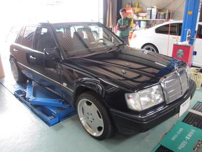 今日は朝から予定外の故障車?が立て続けにご来店です。まずはM≠aENZのW124から、ハンドル操作をすると右のタイヤの方から”コトコト”音がするとの事です。足回りを交換しているので、何かネジでも緩んでいるのでは?と言われますが、交換したのは10年以上も前の話
