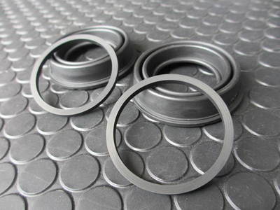 フロントブレーキのオーバーホールはピストンをキャリパーからエアーを吹き込んで取り去った後、付いていたブーツを取り外しOH(オ-バーホール)キット内のブーツ類と交換いたします。ブレーキのピストン及びキャリパーは洗浄し、特に傷はありませんでしたが結構汚れていました。