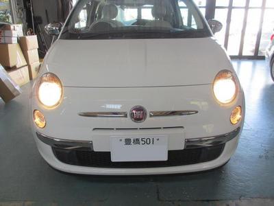 フィアット500のヘッドライトのHID化させて頂きます。FIAT500の純正ヘッドライトはハロゲンバルブを採用していて、もう少し行き先を明るく照らして欲しいという事から交換を致します。