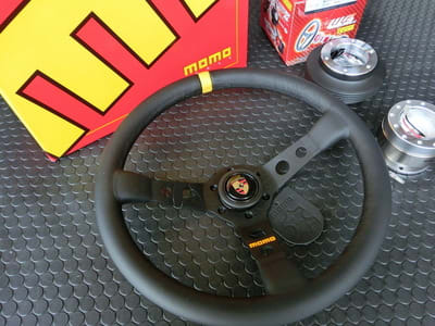 ご依頼いただきましたステアリングは「MOMO(モモ)」のMOD.07のレザータイプの350φとなります。
