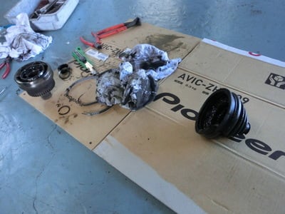 しかしそんなに綺麗でもやはゴム類の劣化は否めなく、右フロントのブーツが突然破れホイールハウス内から、とても綺麗なホイールの裏側までグリスが飛び散り汚れまくりです