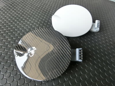 またこちらはオーナー様が持ち込まれた、カーボン製のフューエルリッドの取り付け依頼を頂きます。カーボンフューエルリッドにはアルミタイプのスコーピオンステッカーを挟んで、クリア塗装が施された質感も高いフューエルカバーです。