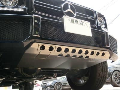 最後には限定車の“Edition463”に装着されることで一躍人気となった、アンダーカバーを取り付けさせて頂きますが、このアンダーカバーはG63のバンパーに形状が合うようになっています。よってG350等のノーマルバンパーには、残念ながら適合しません。