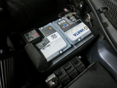 バッテリーはヨーロッパ車の多くが純正バッテリーとして採用する“VARTA(ヴァルタ)”で、電解液を密封したAGMテクノロジーによる完全メンテナンスフリーが特徴です。さらに、振動や高負荷にも強く、大きな電力を要求する現代のクルマに最適な設計となっています。