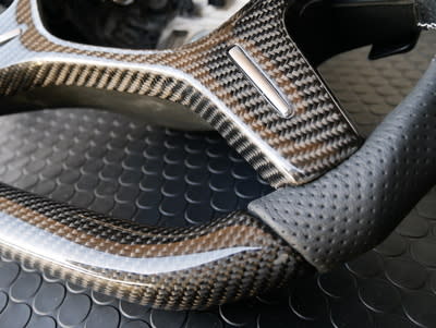 今回はいつもの通りステアリング全体はDシェイプとして、初めての試みとなりますがセンターパネルもカーボン加工を施してみました