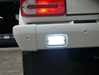 バックランプは昔ながらのフィラメントの電球タイプとなり、点灯時もかなり暗く少し黄ばみ便所っぽい薄暗い感じですが、Gクラス専用のLEDバックランプで御覧の通り、きれいな純白となり光量も十分です![]()