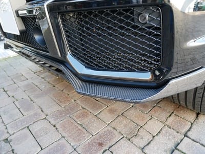 また純正パーツに交換するのであれば、カーボンを多用したパーツに交換されたいとの事から、G63ルックのカーボングリル・パンパーのメッキカバーもカーボンカバーにフロントカーボンリップリップスャCラーの装着をご依頼頂きました。